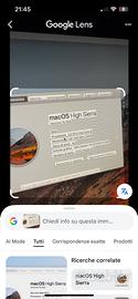 • Sistema Operativo: macOS High Sierra (versione 10.13.6), l'ultima release stabile e performante supportata ufficialmente da questo modello.