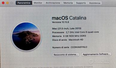 Apple iMac 21.5’ dicembre 2013 Perfetto, usato pochissimo 1Tb (1000Gb) di spazio di archiviazione Perfettamente funzionante Preferisco consegna a mano a Milano e dintorni