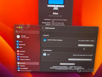iMac 21,5 Pollici 2017, Slim 8gb Ram SSD 500gb , ben tenuto e tutto funzionante, compreso tastiera e Mouse Wireless Originali , valuto scambio con iphone 14 pro in su, consegna a mano a torino