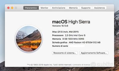 iMac 21,5 pollici, (Mid 2011) intel Quad Core i5 2.5GHz, 8GB RAM, 500GB HDD, CD/DVD