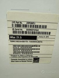 Vendo IMac 21.5” (2013) ottimo condizioni perfettamente funzionante piu gia installato Microsoft Office 2019 completo ————-caratteristiche————— *Versione - macOS Catalina 10.15.8 ultimo aggiornamento *Schermo - 21.5” 1920*1080 *Processore - 2.9Ghz Intel Core i5 Quad - core *Ram - 8GB 1600 MHz DDR3 *HardDisk - 1TB *Scheda grafiche - NVIDIA GeForce GT-750M 1GB *Scatola,Cavo originale *Tastiera e mouse originale wireless incluso Prezzo non trattabile Ritiro in zona solo Bologna Non faccio spedizione