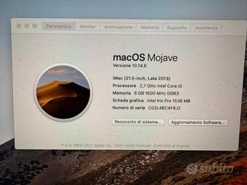 Vendo iMac 21,5 pollici (fine 2013) perfettamente funzionante, ideale per uso ufficio, studio, navigazione web, pacchetto Office, gestione email e utilizzo quotidiano.