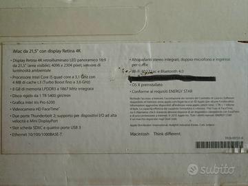 LED panoramico 16:9 da 21,5" (area visibile); 4096 x 2304 pixel; sensore di luminosità ambientale