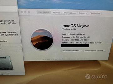 Vendesi iMac 21.5" I5. 1.4 GHz _ 8Gb RAM _ 250 Gb SSD _ Intel HD Graphic 5000 1536 Mb Video Card