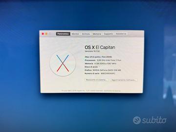 Vendo iMac Apple 21,5” Fine 2009, perfettamente funzionante, usato sempre con cura.