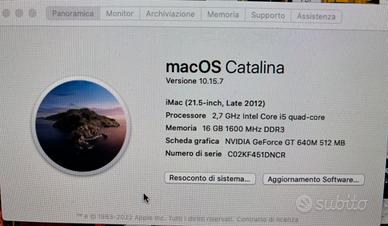 Vendo iMac 21,5 pollici di fine 2012, 16gb ram, 500gb SSD, processore intel i5 in perfette condizioni con tastiera originale apple e mouse compatibile