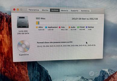 Vendo iMac 8.1 24" 2008 con Accessori Originali - *Modello*: iMac 8.1 - *Schermo*: 24 pollici - *Memoria*: 4GB RAM - *Archiviazione*: 256GB SSD - *Tastiera e mouse*: originali Apple, inclusi nella vendita - *Uso domestico*: navigazione web, email, streaming di musica e video - *Lavoro*: office, editing di testi e immagini - *Studenti*: un'ottima opzione per studiare, fare ricerche e creare progetti - **Leggerissima ammaccatura in alto a dx come si vede in Foto Prezzo trattabile