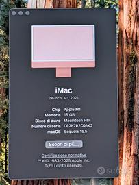 Imac 24 M1 del 2021 copertura Apple Care estesa fino a febbraio 2026 . Completo di scatola e tutti gli accessori. Perfettamente funzionante. Colore Orange.