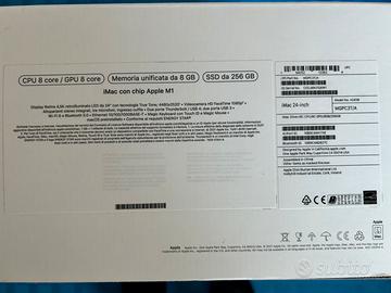 Computer all in-one Apple iMac 24 M1 (2021) in condizioni ottime, utilizzato sempre con cura maniacale. Vendo per upgrade ad altro modello. Caratteristiche principali: Chip Apple M1 RAM 8gb SSD 256gb Dispaly Retina 4.5k Completo di tastiera Apple Magic Keyboard e mouse Apple Magic Mouse 2, cavi di alimetazione e cavo per ricarica tastiera/mouse. Scatola originale + seconda scatola di imballo. Nessun difetto, perfettamente funzionante e pronto all’uso.