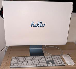 Vendo iMac 24 pollici Apple M1 colore blu, condizioni pari al nuovo. Il computer è praticamente inutilizzato, HA ANCORA LE PELLICOLE ORIGINALI SULLO SCHERMO SU TASTIERA E SU MOUSE (tolte solamente per le foto), tastiera e mouse ed è completo di scatola originale e tutti gli accessori come Magic Keyboard con tastierino numerico layout italiano con impronta digitale e Magic Mouse.