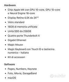 Vendo, come da titolo, iMac 24” M4 Apple color argento: