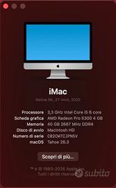 iMac 27” del 2020 con 40 giga di memoria - SSD 512 Giga