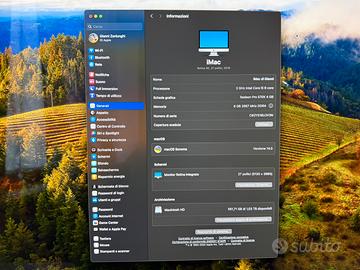 Buongiorno, Vendo imac 27" anno 2019. Processore: intel core i5 3 ghz. Ram: 8gb DDR3 Hard disk: 1 TB fusion drive Scheda video: AMD Radeon pro 570x con 4 GB di memoria dedicata. Tenuto molto bene. Perfetto per chi ha iphone. Tastiera e mouse originale wireless. Completo di scatola Solo ritiro a mano zona Piacenza, non spedisco. Un saluto a tutti