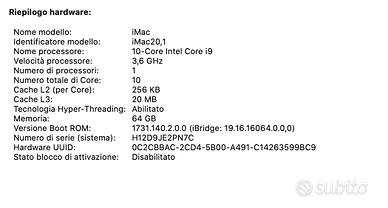 Apple iMac 27″ Retina 5K (2020) — Processore i9 / 10-Core • 64 GB RAM • SSD 512 GB
