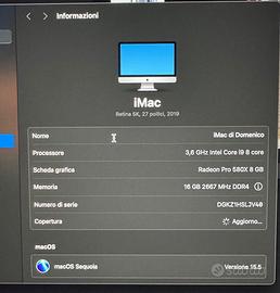 Processore Intel core i9 - 8 core di nona generazione a 3,6 GHz (turbo boost fino a 5,0 GHz).