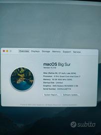 Vendo iMac 27" 5K late 2014 con layer tastiera USA e magic mouse 2 incluso, perfetto per studenti, È in buonissime condizioni e lo vendo solo per inutilizzo e per passaggio a sistema Windows, accetto scambi con monitor da gaming della stessa grandezza
