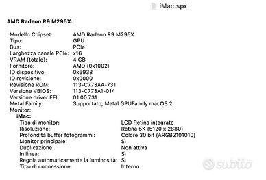 Per passaggio professionale a Mac Studio, vendo glorioso iMac 27" 5k late 2014 con la seguente configurazione: