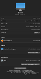 Vendo iMac 27 pollici, modello Retina 5K di metà 2017. In perfette condizioni con imballaggio originale e accessori. Uso professionale quindi con cura e attenzione.