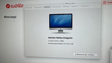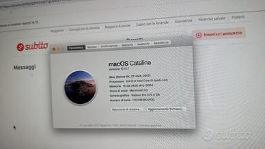 Computer Apple Imac 27" del 2017; Intel Core i5 Quad Core; 16 GB Ram; 4 GB scheda video; 5k Retina 27"; SSD 512 GB; completo di tastiera e mouse; imballo originale; perfette condizioni. Aggiornabile al sistema operativo più recente.