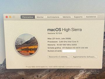 - Sistema operativo macOS High Sierra Versione 10.13.6