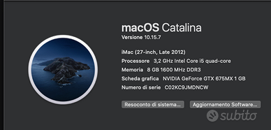 Vendo iMac 27 pollici (Fine 2012) funzionante ma con alcuni difetti tecnici, ideale per chi cerca un grande schermo a basso costo o componenti di ricambio.