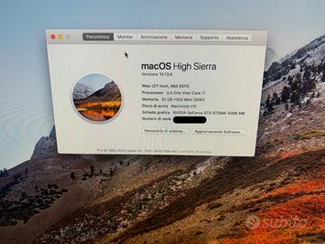 iMac 27 metà 2011, funziona benissimo nonostante gli anni, si accende in pochi secondi ed è veloce anche ad aprire programmi più pesanti , non si blocca, unica noia dover cercare le versioni di programmi stabili su high sierra. Sono stati fatti lavori di aggiornamento hardware, il computer è stato portato al massimo delle sue potenzialità.