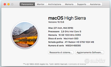Imac 27'' mid 2010 con 16 GB di RAM e SSD da 1 TB. Perfettamente funzionante, come nuovo, confezione originale. Vendo senza mouse e tastiera.