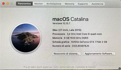 iMac 27 pollici, fine 2013, processore 3,4 GHz Itel Core i5 quad Core