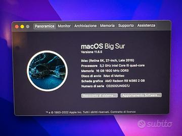 Schermo 5K da 27 pollici, 16gb di RAM, 1 tera di SSD, in condizioni perfette.