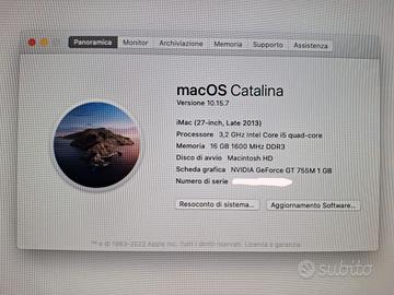 Vendo per inutilizzo questo iMac 27 pollici late 2013. Il mac è perfettamente funzionante, senza segni di usura o graffi sullo schermo. E' sempre stato usato (poco) per fotoritocco.