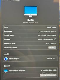 Vendo Apple iMac 27” Retina 5K (modello 2020) in condizioni assolutamente perfette, pari al nuovo.