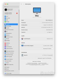 iMac 27” retina 5K, con 64GB di ram e 4TB di memoria ssd. Processore intel i5 3,7 GHz. Mac os sequoia Modello 19.1 Ottime condizioni, completo di magic mouse, magic keyboard, cavo alimentazione e imballi originali.