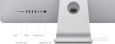 Vendo iMac (Retina 5K, 27-inch, Late 2015) in ottime condizioni estetiche e funzionali. Caratteristiche principali: Display 27" Retina 5K (5120×2880), qualità eccellente Processore Intel Core i5 quad-core 3,2 GHz - RAM 16 GB SSD 2 TB (molto veloce, sostituito al disco originale) Scheda grafica AMD Radeon (dedicata) Wi-Fi, Bluetooth, webcam, audio integrato Il computer è perfettamente funzionante, fluido nell’utilizzo quotidiano e ideale per: grafica (Photoshop, Illustrator), ufficio, studio, navigazione e multimedia. Condizioni: Nessun difetto hardware Sempre utilizzato in ambiente domestico Accessori inclusi: Cavo di alimentazione (tastiera con tastierino e mouse originali)