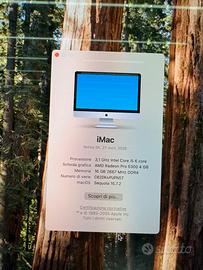 iMac 27” retina 5k, processore 3,1 GHz intel core i5 6 core, scheda graphica AMD Randeon Pro 5300 4GB, memoria 16GB 2667 MHz DDR4, archivazione SSD 256GB, macOS Sequoia 15.7.2, portato ad Apple Store per repristinazione di fabrica e totalmente attestato in perfetto funzionamento, come nuovo di fabrica, pocco uso e rinominato ad Apple Store “prova” invece che mio nome per fare tutta revizione completa di fabrica prima di meterlo in vendita da potere dare garanzia a chi lo prenda, aggiornato sistema ad ultima versione pure ad Apple Store e attestato dai techinici Apple, pronto per nuovo proprietario impostare come vieni nuovo della Apple, in scatola originale, con tastiera e mouse originali, tutti accessori originali Apple in scatola originale pure, comprato e iniziato uso nel dicembre 2021, ho la fattura della Apple Store e usato pocco perche sempre in viaggi all’estero e perchio lo vendo a chi lo usi piu, un eccellente compiuter piuttosto il meglio monitor al mercato e otimo per graphica, videogame, video edizione, lavoro professionale e a casa, meglio computer mai avutto di Apple per me!!! Soltanto ed esclusivamente consegna a mano a Venezia, non acceto diversamente. Facile da portare perche sta sulla scatola originale e di spedizione pure originale della Apple Store. Pesa circa 14kg compresso scatole. Gran vantaggio da questo modello e’ che puo essere aggiunta memoria facilmente da se o ad Apple Store senza costo aggiuntivo, si paga soltanto per quanto compri di memoria, caso volesse avere il massimo di spanzione. Aggiunge fino al massimo di 128GB di memoria ram ed spanzione SSD arriva al massimo di 8T. Ancora oggi Apple non ha fatto monitore di 27” ne con tale qualita, imbatibile!!! Due porte Thunderbolt 3 (USB‑C) Quattro porte USB‑A Gigabit Ethernet o 10Gb Ethernet Slot SDXC card (UHS‑II)
