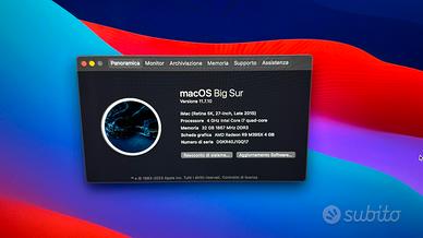 IMac 5k 27 potenziato i7 32gb ram AMD 4gb SSD