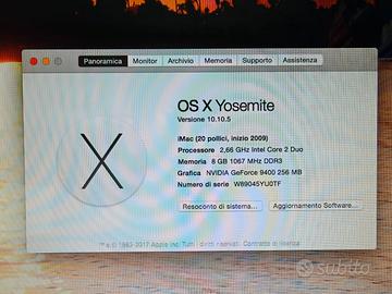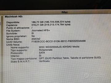 Imac 9.1 - 20 Pollici - inizio 2009 - SATA 320 gb 8gb Ram. Vetro esterno con una piccola incrinatura che rimane nella parte di cornice nera pertanto non davanti al Display e quindi non ne inficia il funzionamento. Perfettamente funzionante. Venduto senza Tastiera e Mouse. (2)