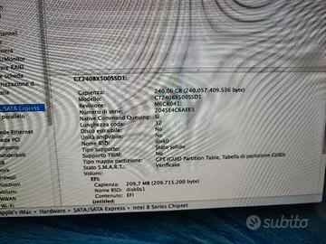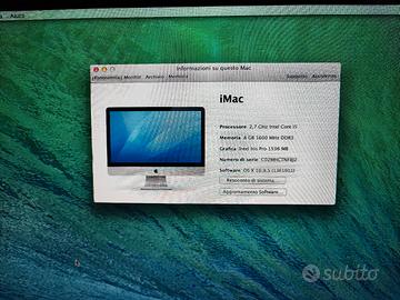 Vendo iMac perfettamente funzionante. CPU Intel core i5 2.7 GHz RAM 8 GB DDR3 SSD 240 GB SOFTWARE OS X 10.9.5 Formattato e reinstallato sistema operativo pulito