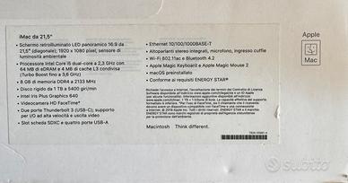 Vendo IMac Apple produzione 2017, acquistato nel 2019 COME NUOVO.