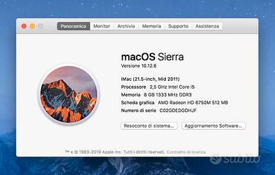 Sistema Operativo: Mac Os Sierra Versione: 10.12.06