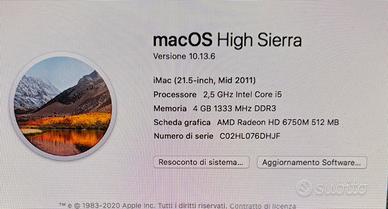 Vendo iMac Apple 21,5” Mid 2011, perfettamente funzionante e in ottime condizioni estetiche. ✔ SSD 256 GB (molto più veloce del disco originale) ✔ 4 GB RAM ✔ Ideale per navigazione, studio, ufficio, uso domestico ✔ Nessun difetto noto - Vendo solo iMac, senza mouse e tastiera - Ritiro a mano a Palermo preferito, possibile prova - Prezzo leggermente trattabile