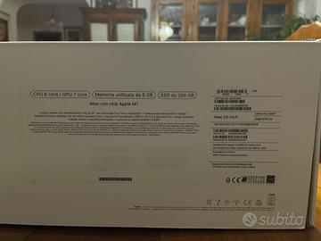 NUOVO iMac Retina 4,5K 24" Chip Apple M1 / CPU 8‑core / GPU 8‑core / 8GB / 512GB SSD. MAI USATO né tolto dalla confezione.
