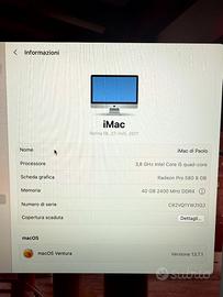 Vendo iMac Retina 5K 27" 2017 2TB 40 GB RAM - con SSD Samsung SSD 870 QVO 4TB Media.