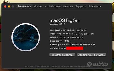 Sistema operativo Mac os Big Sur in quanto ultimo possibile, non va oltre con gli aggiornamenti.