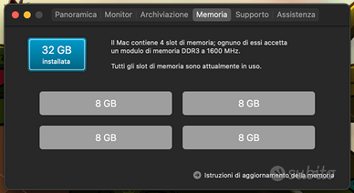 -RAM aumentata al massimo supportato 32GB DDR3 1600 mhz