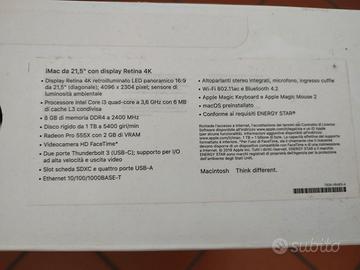 Vendesi iMac con display retina pari al nuovo. Usato pochissime volte e perfettamente funzionante. Consegna a mano zona San Donà e limitrofi. In regalo copertura per lo schermo
