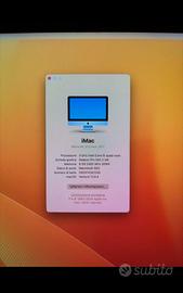Vendo iMac-schermo 21.5” Retina 4k, 2017. Acquistato rigenerato il 23/11/2021 presso TrenDevice al prezzo di 919€ (fattura dimostrativa). Utilizzato pochissimo e mantenuto in maniera maniacale. Processore: 3 GHz Intel Core i5 quad-core. Scheda grafica: Radeon Pro 555 2 Gb. Memoria: 8 Gb 2400 MHz DDR4. Disco di avvio: Macintosh SSD. Vendo comprensivo di tastiera wireless Logitech e mouse Atlantis con filo.