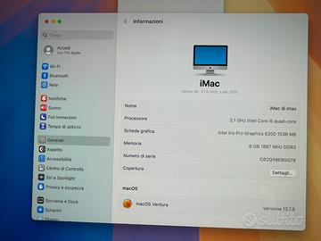 iMac 21,5 Slim 2015 MacOs Retina 4k SONOMA processore i5, 8gb Ram, SSD 1tb ( 1.000 gb) compreso Mouse e Tastiera Wireless originali , consegna a Torino o TUTTO SUBITO, valuto scambio con iphone