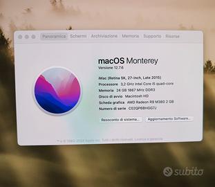 Vendo iMac17,1 monitor Retina 5k 27', Late 2015.