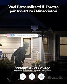 【Rilevazione PIR ed Umana & Tracciamento Intelligente】Quando la telecamera wi-fi esterno rivela una persona, ti avviserà di un possibile intruso nella tua proprietà. Se continua a muovere nella zona del rivelamento della telecamera, si sposterà verso la persona che sta camminando, ruotando l'inquadratura dell'immagine affinché essa rimanga al centro dell'attenzione.