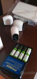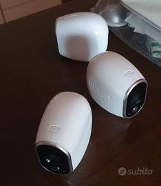 impianto Arlo completo di scatola originale, dotato di 4 video camere tutto senza fili wii free completo di pile ricaricabili in più aggiungo anche carica batterie come da foto . si collega ad internet tramite fili o wii si scarica il programma su smartphone e si collegano le telecamere solo immagini e video no audio notifiche sul cellulare di movimenti o intrusioni vendo perché non ho fibra o ADSL a casa